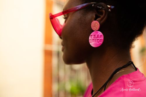 Check out our custom-made earrings, created for Eyva Rose's product photoshoot, Ophélie's bachelorette party, Willia's Taylor Swift concert, and Dana's wedding and bridal party!